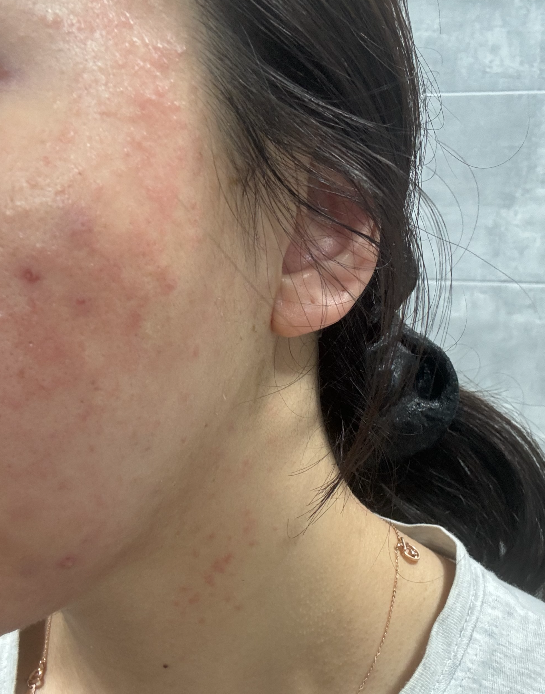 처음사진은 필링후 각질이 일어나서 그런가 보다 했는데 각질이 다 벗겨지고 나니 두 번째 세 번째 사진처럼 피부 전체가 다 오돌톨하게 올라오고 엄청 빨갛게 되어버렸더라고요.